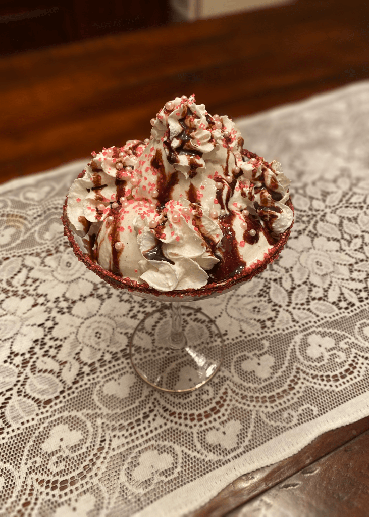 The key to a fancy-looking ice cream sundae has a lot to do with the syrup. Feel free to experiment – but I’ve found that drizzling it in a zig-zag motion will make it look the most professional.